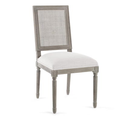 French-Style Dining Chair with Rectangular Natural Rattan Back, Linen Upholstered Seat