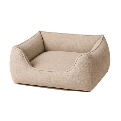 The surrounding bolstered walls provide a sense of security and ergonomic support for head and neck resting, while the low front edge allows easy access for pets of all ages. Its neutral beige tone and sculptural curves make it a stylish addition to any modern home décor — from minimalist to Scandinavian interiors.