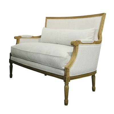 Elevate your living space with the timeless elegance of this French country farmhouse loveseat. Crafted with a solid wood frame and detailed carved accents, this rustic wood sofa combines durability with refined charm. Upholstered in soft beige linen fabric, it offers a spacious cushioned seat and a supportive back pillow, ensuring comfort for everyday relaxation or gatherings. The natural wood finish highlights its farmhouse-inspired design, making it a versatile piece that blends seamlessly with rustic, modern, or traditional interiors. Perfect for a cozy living room, stylish entryway, or intimate seating area, this farmhouse accent loveseat serves as both a functional and decorative addition. Whether styled alone or paired with matching chairs, it creates a warm and inviting atmosphere. Ideal for those who appreciate craftsmanship and understated luxury, this rustic wood loveseat brings character, comfort, and sophistication to any home.