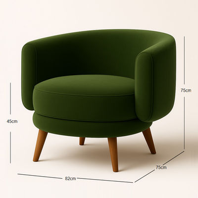 Experience comfort and style with this Modern Velvet Round Accent Chair, designed to elevate any living room, bedroom, or reading corner. Wrapped in luxurious velvet and crafted with a seamless curved backrest, this chair provides exceptional support while creating a soft, modern silhouette. The plush round seat cushion offers inviting comfort, while the solid wood legs ensure durability and stability. Perfect as a lounge chair, vanity seat, or decorative accent piece, it adds warmth and elegance to any interior. A versatile furniture choice for modern homes seeking both functionality and timeless design.