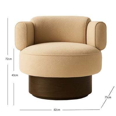 Experience modern comfort with the CloudSoft Swivel Lounge Chair, designed to bring warmth, style, and functionality to any living space. This round accent chair features a generously padded seat and backrest upholstered in premium bouclé fabric, offering a soft, cloud-like feel with exceptional durability. The 360-degree swivel base is crafted from solid wood, providing stability, smooth motion, and a refined natural texture that elevates the chair’s contemporary silhouette.