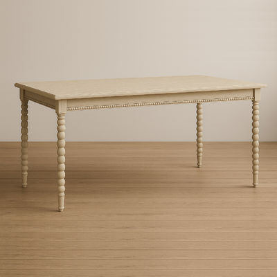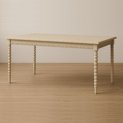 Elevate your dining space with this Vintage Beaded-Leg Solid Wood Dining Table, a refined blend of craftsmanship, elegance, and timeless design. Expertly built from premium solid wood, this table showcases a warm natural finish that highlights the beauty of the wood grain. The standout feature is its beautifully sculpted rounded beaded legs, inspired by European vintage furniture, adding a touch of sophistication and unique character to any home interior.