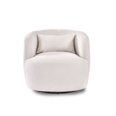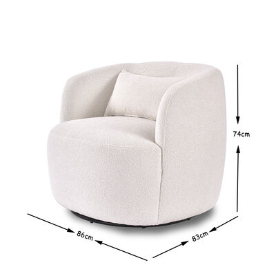 Designed with a 360-degree swivel base, the chair allows smooth rotation for effortless movement, making it ideal for living rooms, bedrooms, reading corners, or home offices. The gently curved barrel shape provides supportive armrests and a relaxed seating position, while the generously cushioned seat and matching back pillow enhance overall comfort.