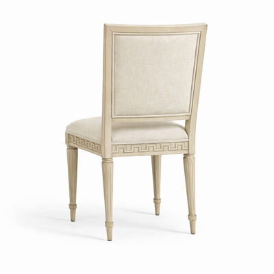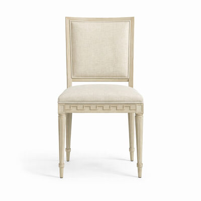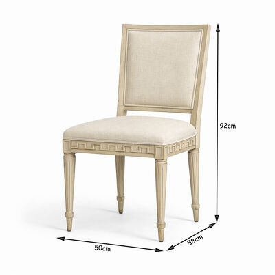 The Aurelian Carved Linen Dining Chair blends refined French-inspired elegance with modern comfort, making it a perfect addition to sophisticated dining interiors. Crafted from solid wood, this chair features a softly curved backrest and delicately hand-carved geometric detailing along the apron, adding depth and architectural character.