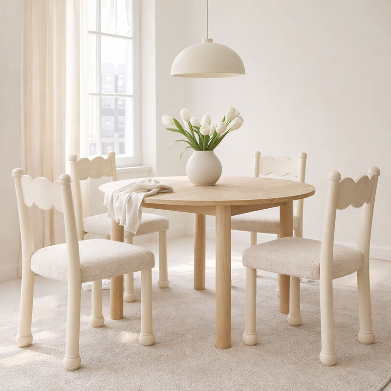 The Lunara Scalloped Back Dining Chair brings a playful yet refined aesthetic to modern interiors. Designed with a softly sculpted silhouette, this chair features a distinctive scalloped backrest that adds a unique artistic touch while maintaining a clean, minimalist profile.