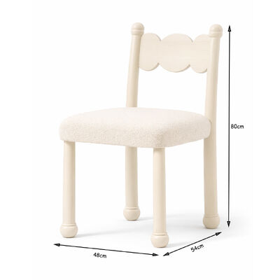 Whether styled as part of a dining set or used as an accent piece, the Lunara chair adds personality, softness, and modern charm to any space—perfect for those who appreciate thoughtful design with a playful edge.