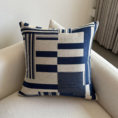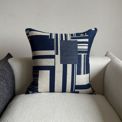 Introduce a bold visual statement to your space with this modern geometric throw pillow. Featuring an abstract arrangement of navy blue lines and shapes on a soft ivory base, this design adds a contemporary and artistic touch to any interior.