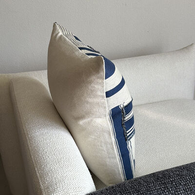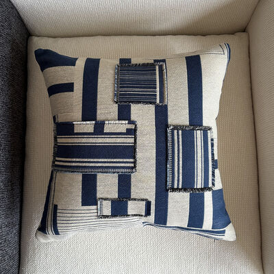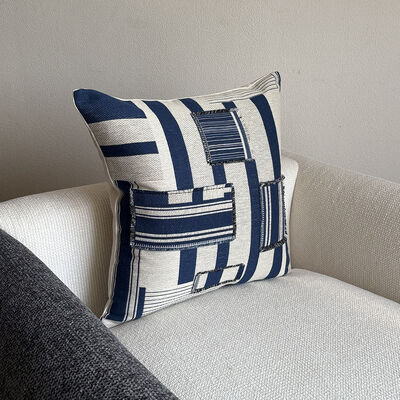The combination of clean lines, contrasting stripes, and dimensional elements makes this cushion a perfect choice for design-led homes seeking something unique.