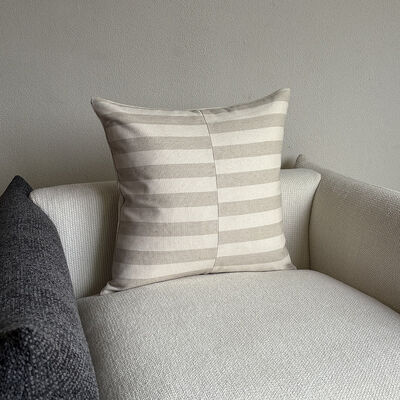 Designed for effortless styling, this clean stripe throw pillow brings a sense of order and balance to your space. One side features softly defined linear stripes in warm neutral tones, creating a structured yet calming visual effect, while the reverse offers a smooth solid finish for a simpler look.