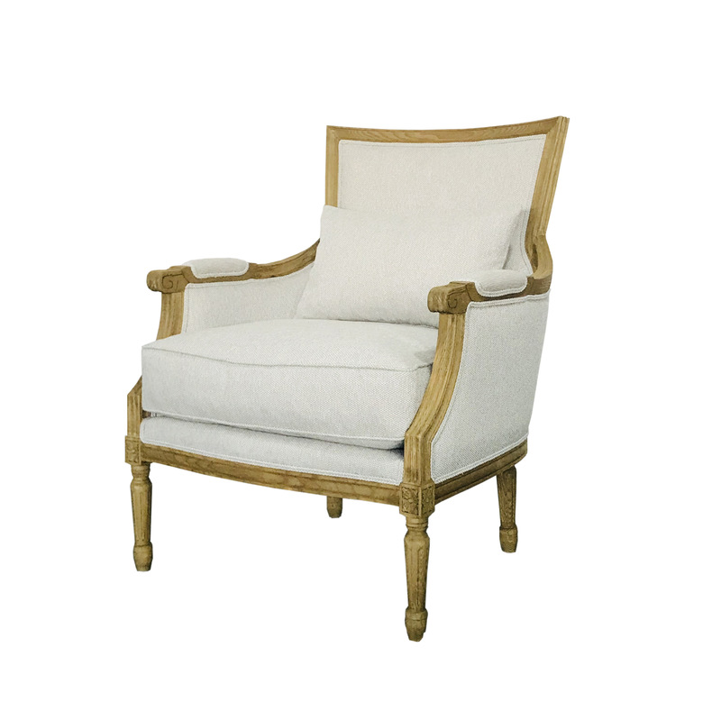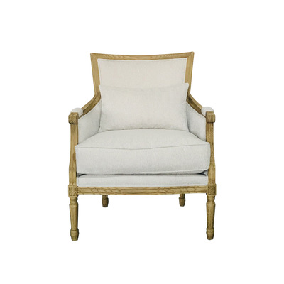 Add timeless charm to your home with this French country chair, thoughtfully designed with a solid wood frame and detailed farmhouse-inspired carvings. Upholstered in soft beige linen, this rustic wood chair combines durability with comfort, offering a cozy cushioned seat and supportive back pillow for everyday lounging. The natural wood finish enhances its farmhouse accent chair style, blending seamlessly with both rustic and modern décor. Perfect for a living room, reading nook, or bedroom, it serves as a versatile statement piece while providing lasting quality. Whether you are creating a French country interior or looking for a farmhouse accent chair with rustic elegance, this design adds warmth, texture, and sophistication to any space. Ideal for those who value craftsmanship and timeless beauty, this chair elevates your home with comfort and character.